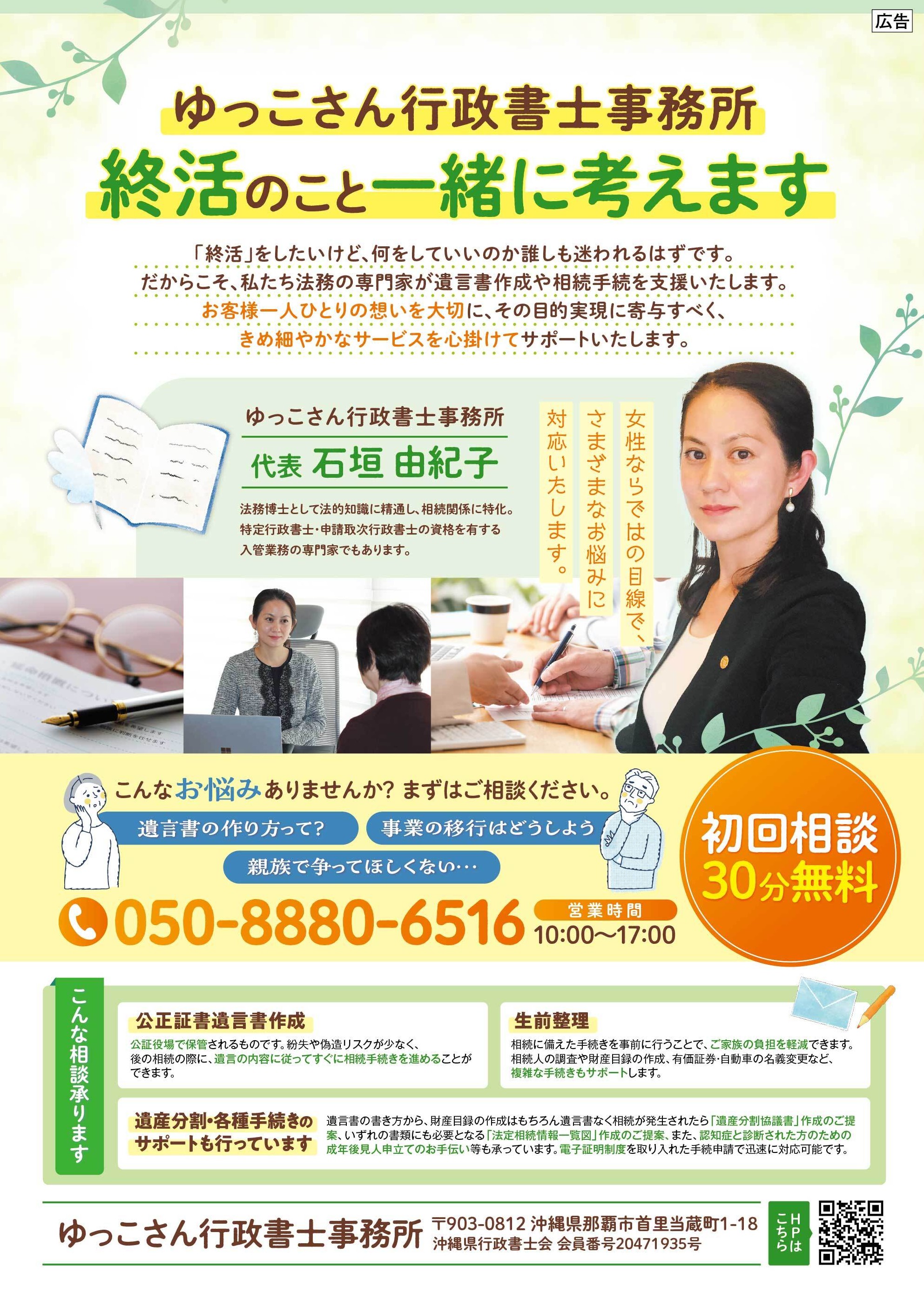 令和7年度豊見城市のエンディングノートの裏表紙に広告を出しています。